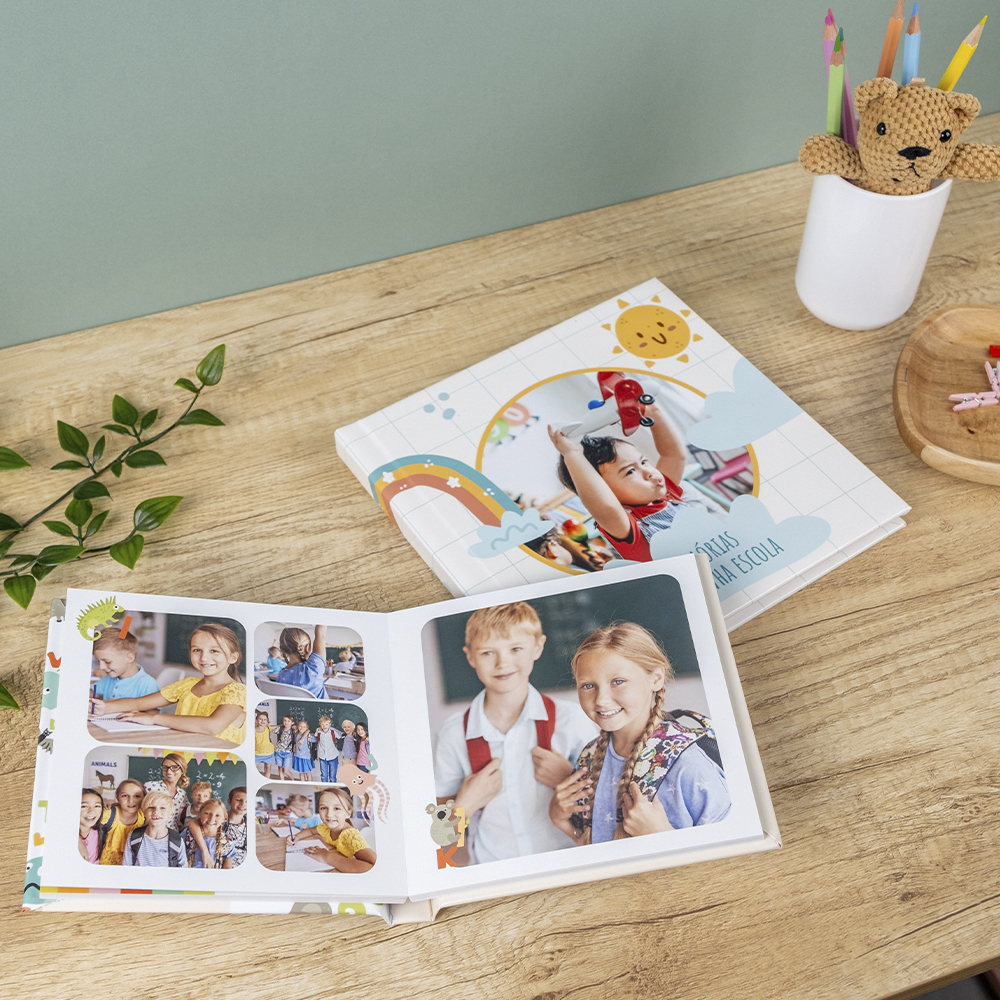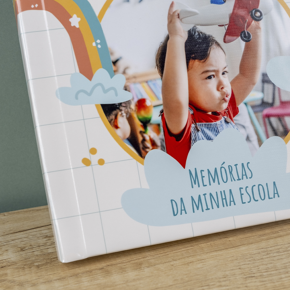 Este álbum celebra o fim de uma etapa importante. É perfeito para guardar os retratos dos finalistas, os momentos com os colegas, os sorrisos nos dias de festa e tudo aquilo que marca a passagem do pré-escolar para o próximo desafio.