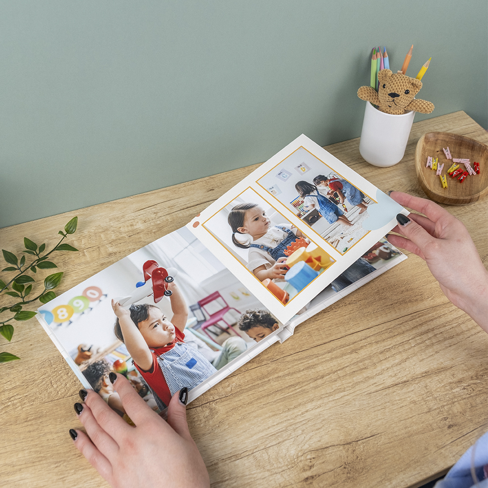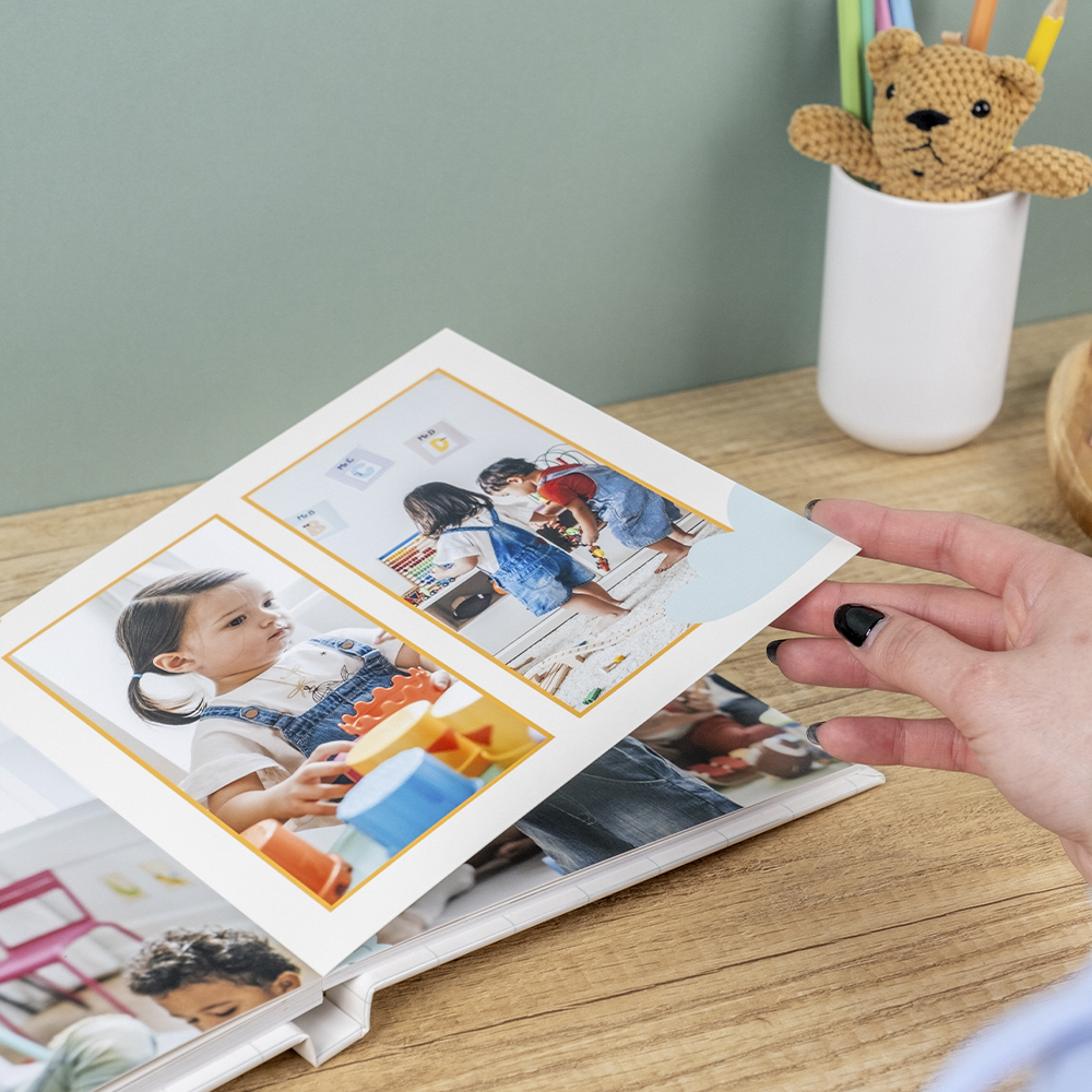 Os Álbuns de Fotos Dreambooks apresentam uma abertura panorâmica, com a possibilidade de colocar uma foto em destaque ocupando duas páginas. Desta forma, desfrutarás de uma visualização perfeita das tuas fotos, sem cortes ou partes escondidas.