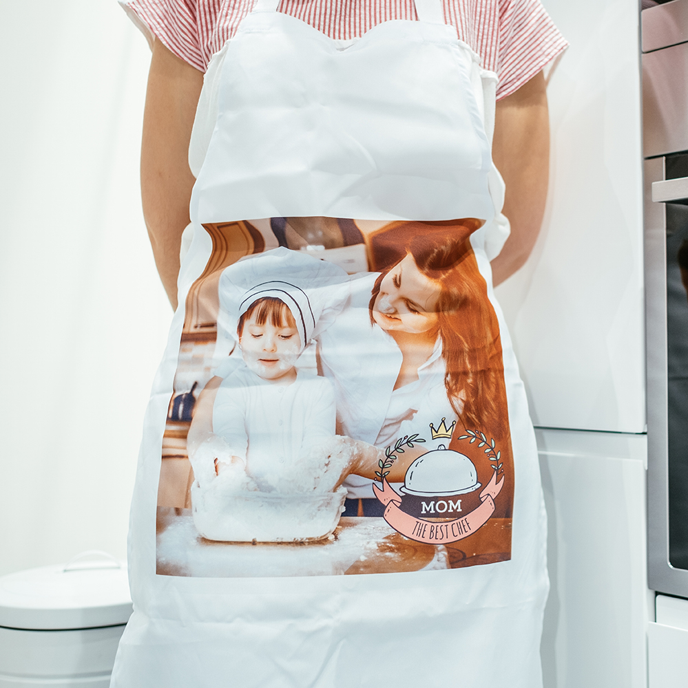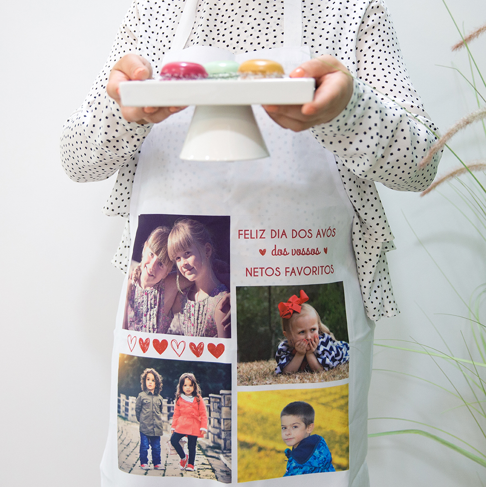 Com medidas de 80 x 100 cm, dispõe de uma área personalizável de 37 x 37 cm, perfeita para colocar as tuas fotografias, imagens ou textos e dar um toque único ao teu avental.