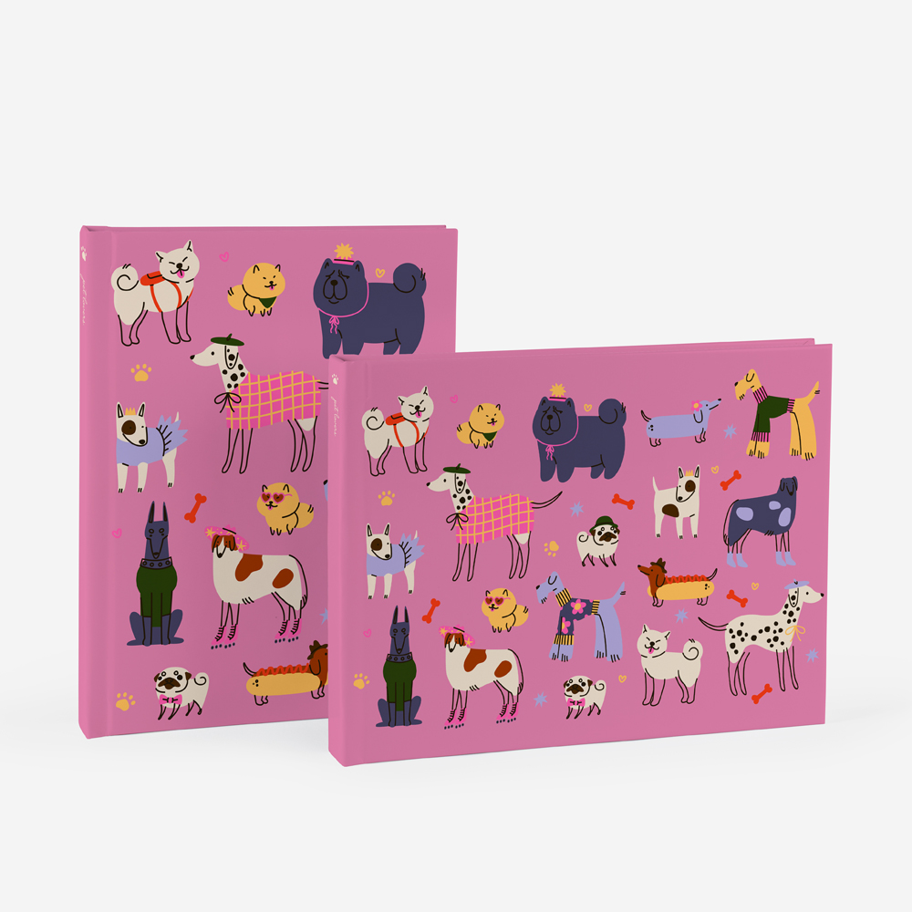 Álbum de cartão resistente, com folhas em branco.