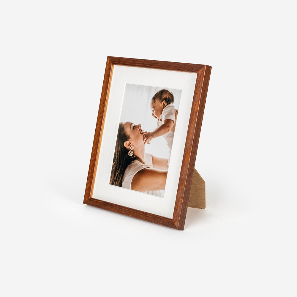 Moldura de alta qualidade, composta por uma estrutura em Madeira com proteção em vidro, garantindo durabilidade e um acabamento perfeito para destacar as tuas fotos.