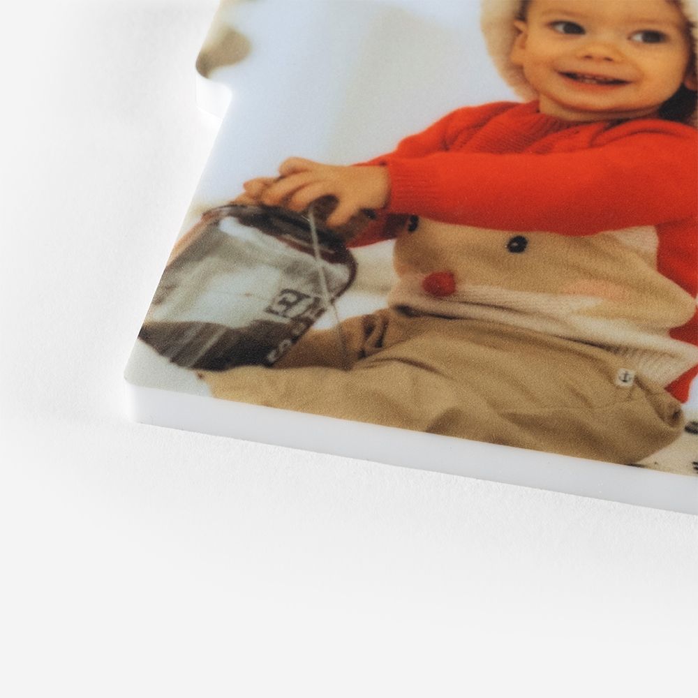 Fabricado em acrílico, este enfeite é perfeito para decorar a tua árvore de Natal. A personalização é feita através de impressão UV Inkjet Fujifilm, aplicada em apenas um dos lados.