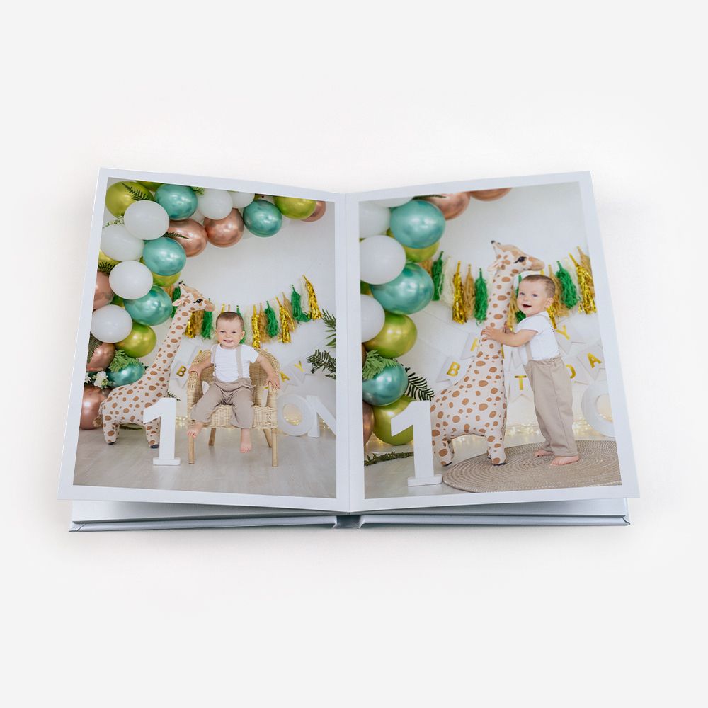 Los Álbumes de Fotos Dreambooks presentan una apertura panorámica, permitiendo colocar una foto destacada que ocupe dos páginas. De esta manera, disfrutarás de una visualización perfecta de tus fotos, sin cortes ni partes ocultas.