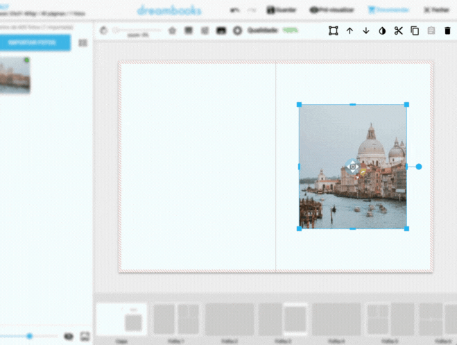 De seguida, apresentamos-te as possibilidades de edição que tens, ao clicar diretamente em cima da foto, depois de a teres posicionado no teu projeto.