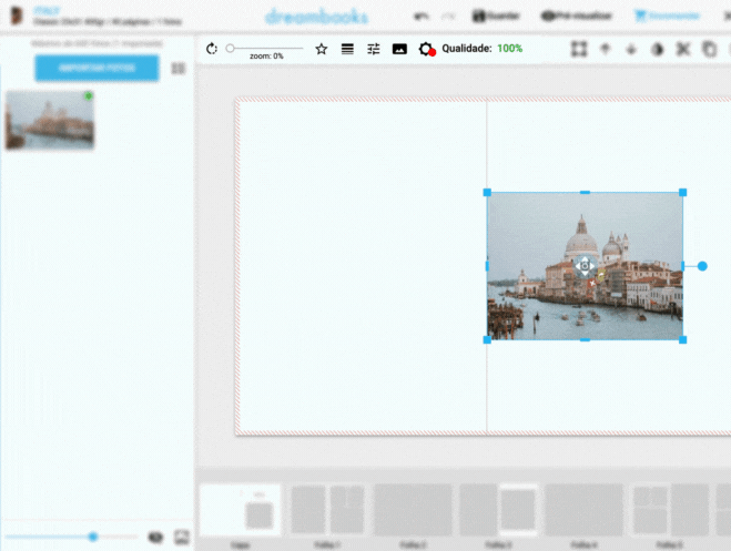 Continuando a apresentação das ferramentas da direita para a esquerda, de seguida tens o nosso índice de qualidade. É extremamente importante que o consultes para garantir que as tuas fotos sejam impressas com a máxima qualidade. É recomendado que a foto não tenha valor inferior a 80%.