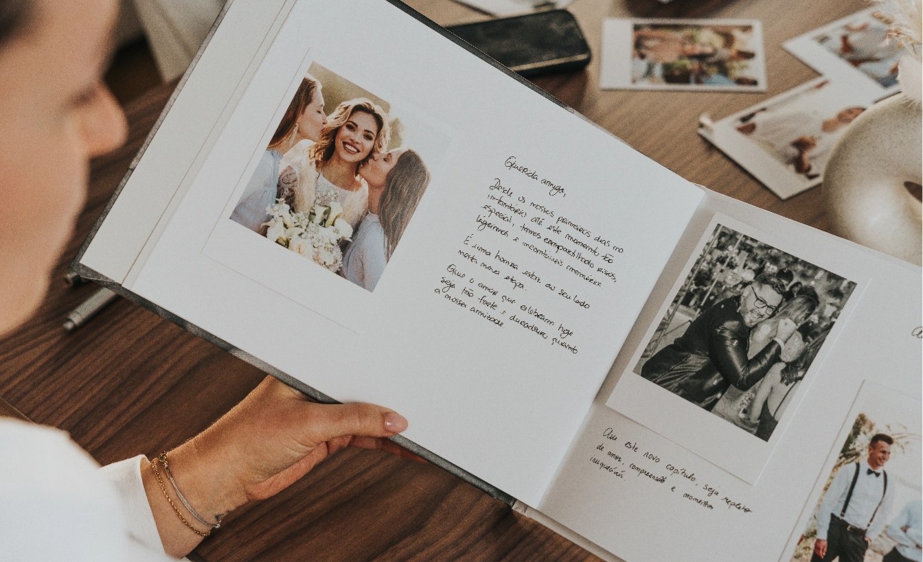 Cria uma experiência inesquecível para os teus convidados com convites, álbuns, lembranças e muito mais — tudo personalizado à tua medida.