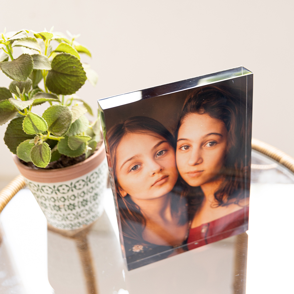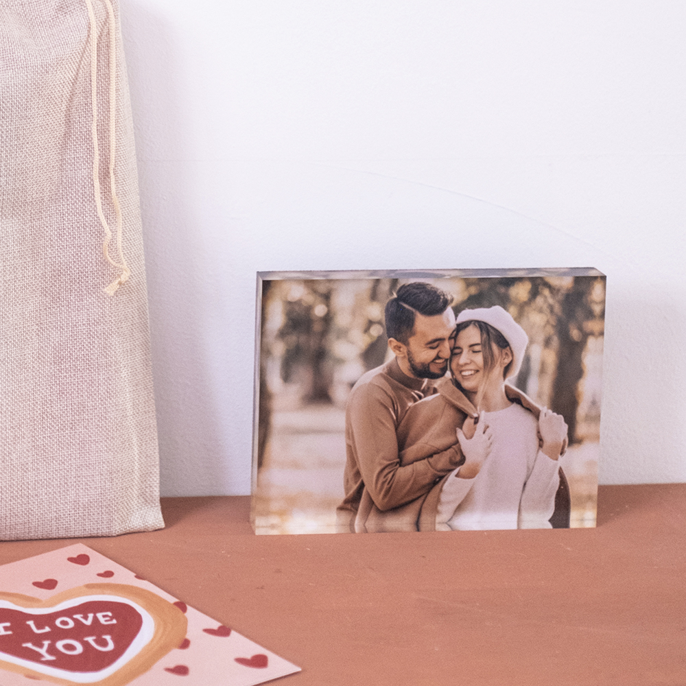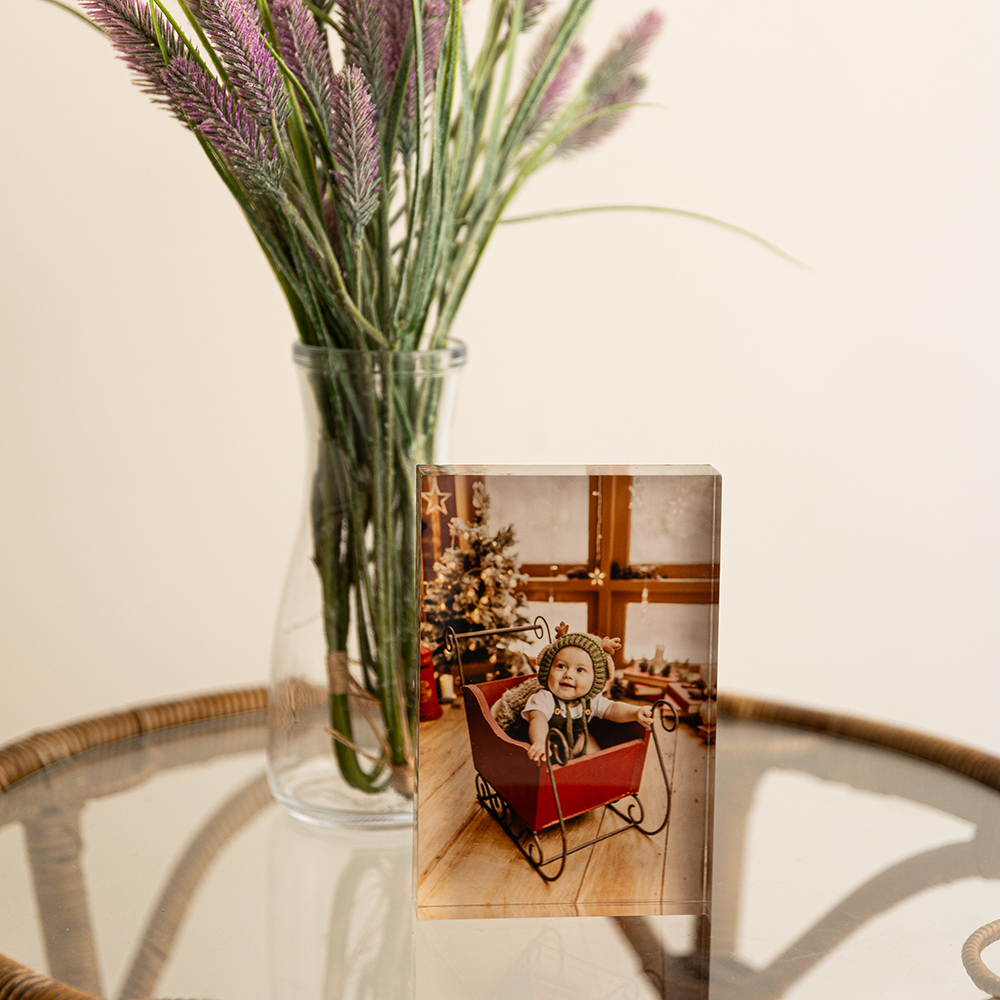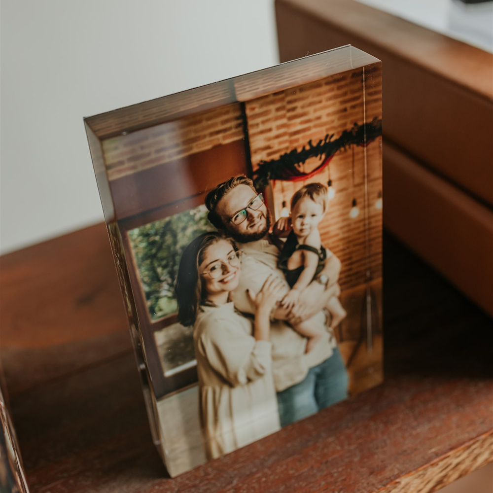 Os porta-retratos em acrílico são impressos em placas de 20mm de espessura, conferindo uma durabilidade e robustez superior. Essa altura oferece um bonito efeito de profundidade, garantindo mais brilho, nitidez e durabilidade à impressão fotográfica.