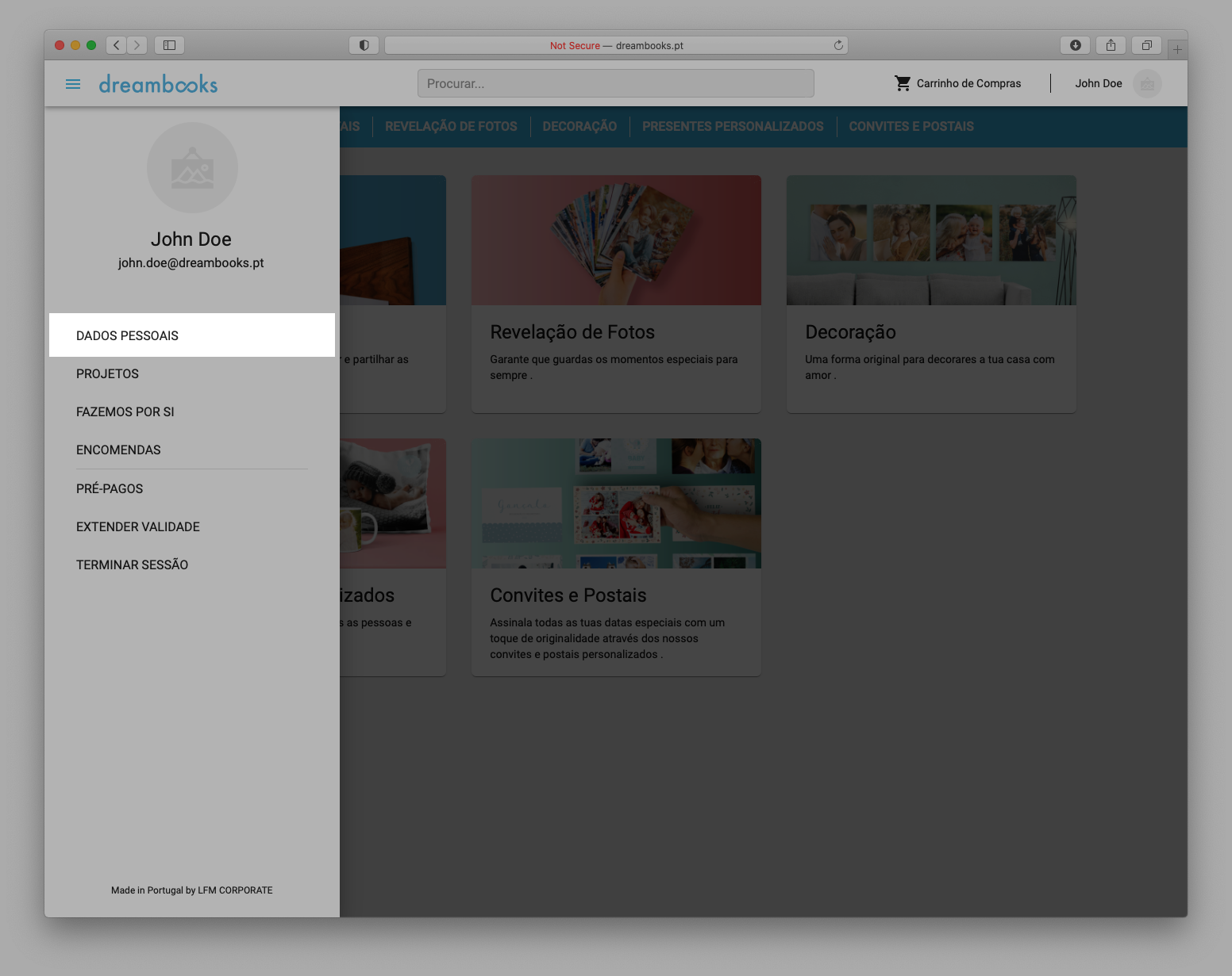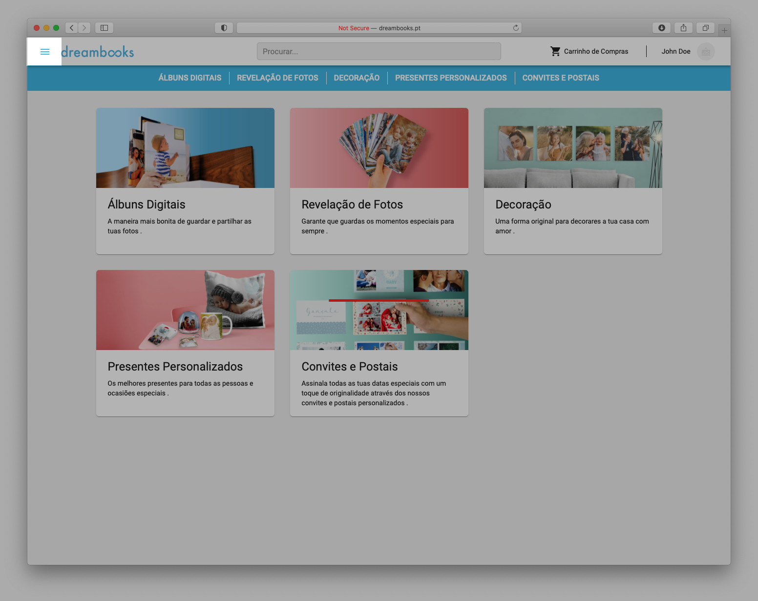 7.1. O processo para comprar produtos fotográficos na Dreambooks é o seguinte: 1. Seleção da opção "Comprar". A partir de qualquer projeto previamente criado pelo utilizador, o comprador deve clicar em "Comprar" para iniciar qualquer processo de compra. 2. Preenchimento de informações adicionais do Utilizador. O cliente deve revelar em formato específico: nome e apelido, morada e telefone. 3. Selecionar forma de pagamento. O utilizador deve selecionar uma das seguintes formas de pagamento disponíveis: cartão de crédito ou PayPal. 4. Aprovação da compra. Ao confirmar a compra, o utilizador aceita a compra dos produtos por ele indicados e nas condições pré-estabelecidas pelo website.